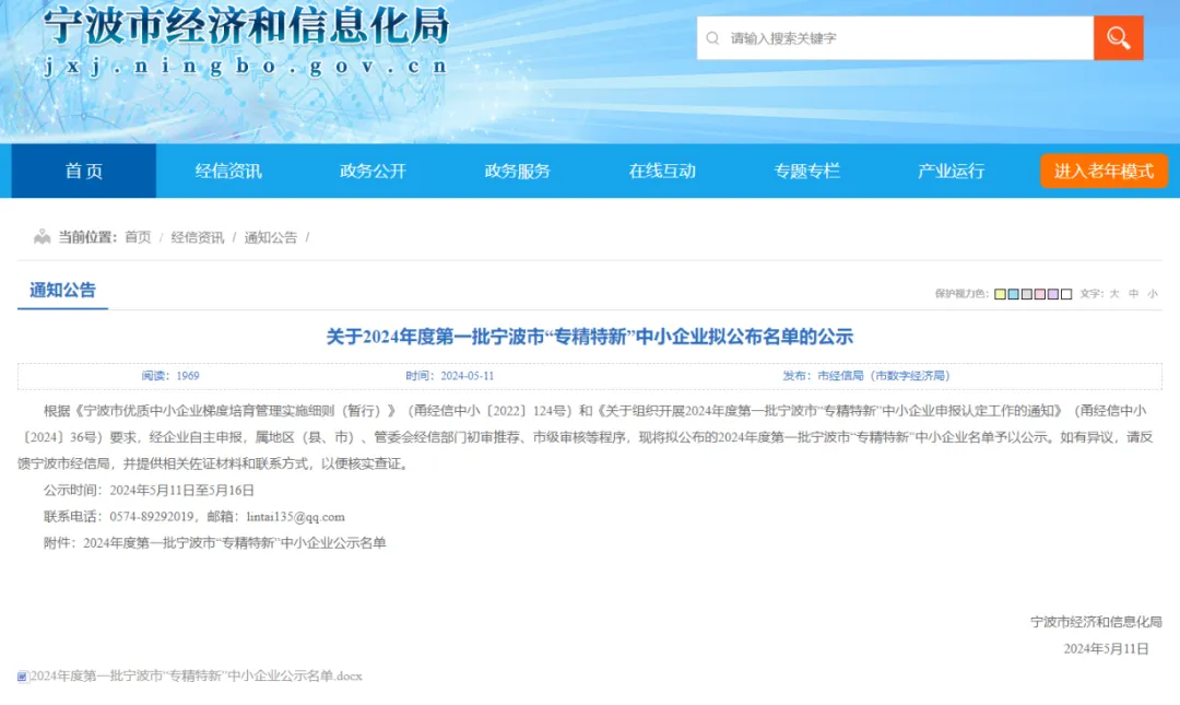 6月,宁波市经济和信息局公示了2024年度第一批宁波市“专精特新”中小企业,作为国家高新技术企业,浙江糖能科技有限公司成功入选。