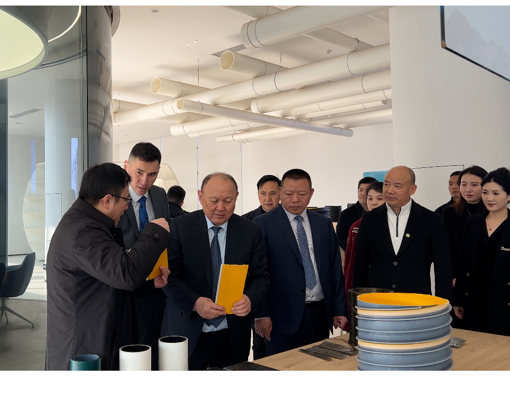 埃米尔·阿布迪卡迪洛夫·米尔扎库洛维奇一行在考察了四川玄武岩纤维产业后,莅临源单深入了解玄武岩纤维建筑材料的生产工艺、技术特点和性能优势。源单公司负责人向代表团介绍了玄武岩纤维管道在建筑、交通、市政道路方面的产业化应用,并展示了公司近年来在玄武岩纤维新型管道方面的研发成果。